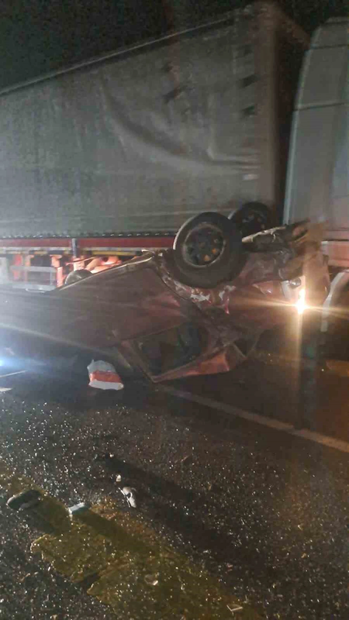 Direksiyon hakimiyetini kaybeden otomobil karşı şeride uçtu