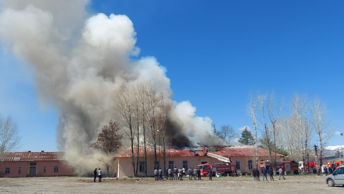 Erzurum Şeker Fabrikası'nda işçilerin kaldığı yatakhanenin çatısında yangın paniğe neden oldu.