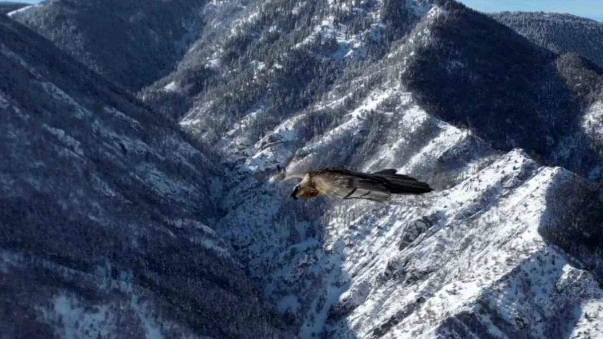 Erzurum’da sakallı akbaba dron ile görüntülendi