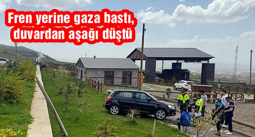Erzurum’da fren yerine gaza basan sürücünün kullandığı otomobil, park ettiği alanın hemen önündeki bahçe duvarından aşağı düştü. Kazada can kaybı ya da ciddi bir yaralanma yaşanmazken, facianın önüne alt tarafta bulunan büyük tahta parçaları engel oldu. Araç yaklaşık 1,5 metrelik bahçe duvarından aşağı düşerken, tahta parçalara vurarak durdu. Böylece araç takla atmaktan kurtuldu. İhbar üzerine adrese sevk edilen polis ekipleri kazaya ilişkin çalışma başlattı.